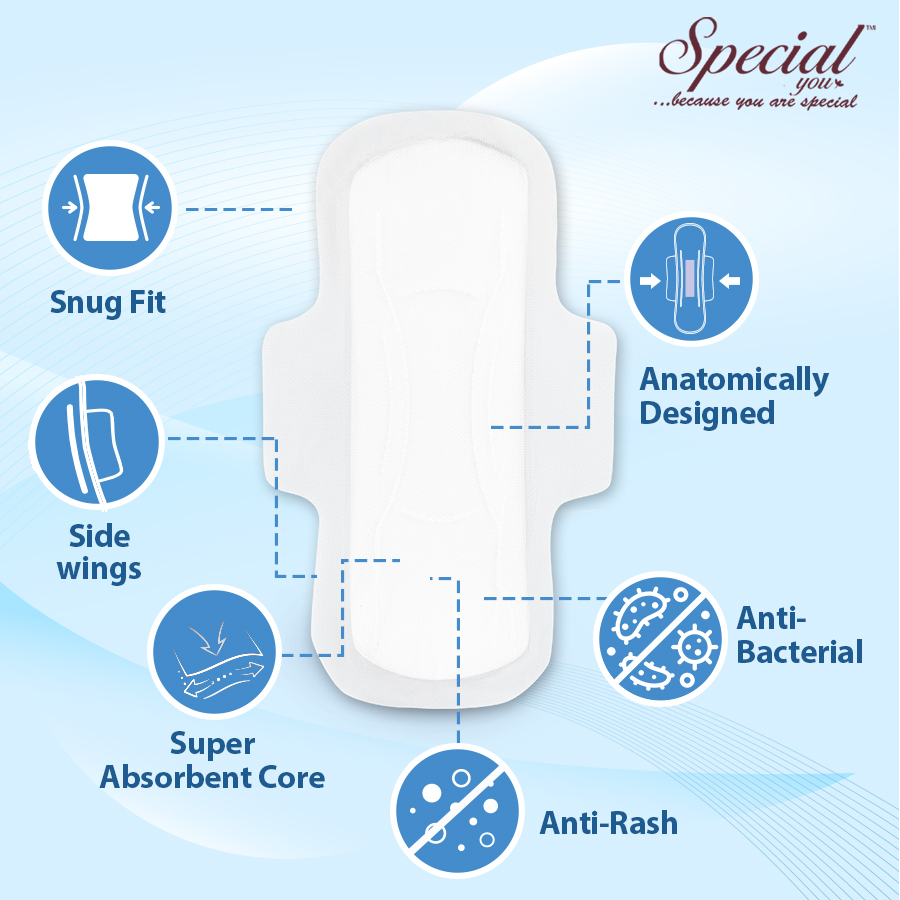 - Anatomically Designed: Special You Super Dry sanitary napkin is specially designed for women to provide comfort and hygiene during their menstrual cycle.